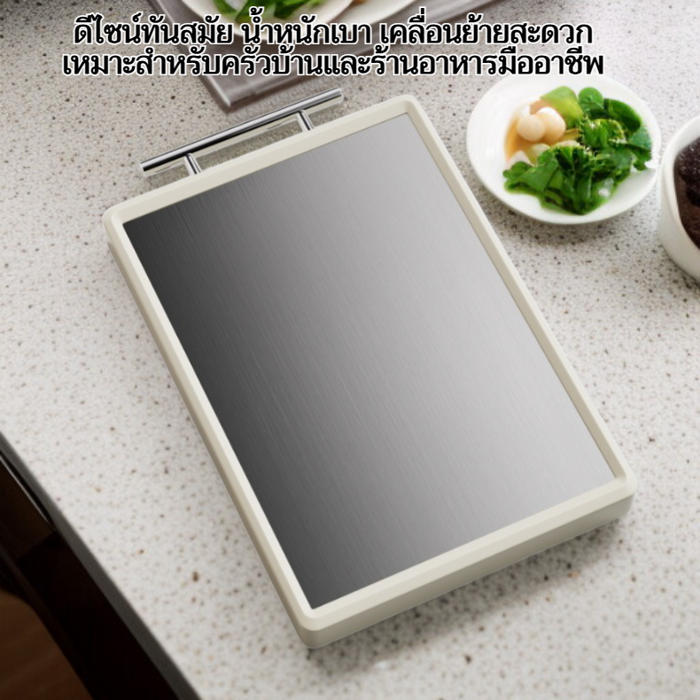 ● เขียงสแตนเลส ผลิตจากวัสดุคุณภาพสูง แข็งแรง ทนทาน ไม่เป็นสนิม ใช้งานได้นานกว่าหลากหลายวัสดุทั่วไป