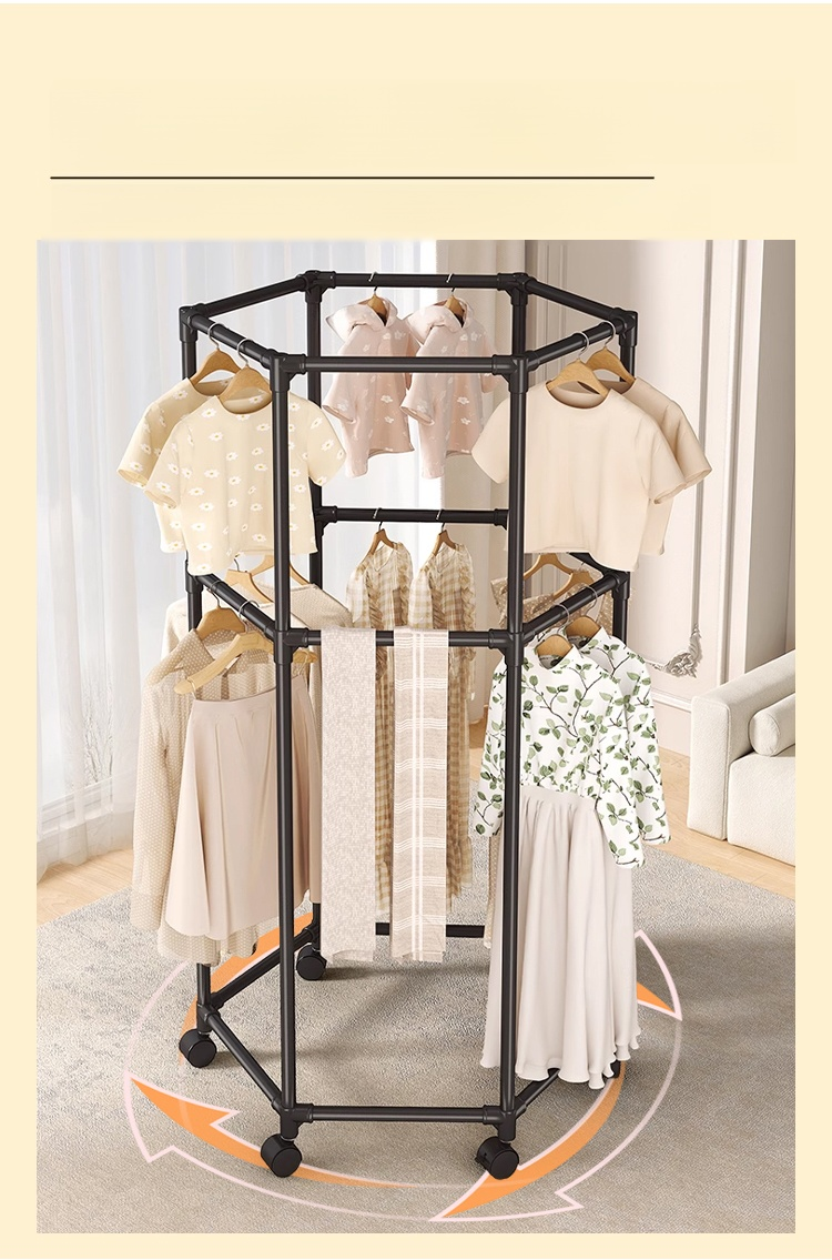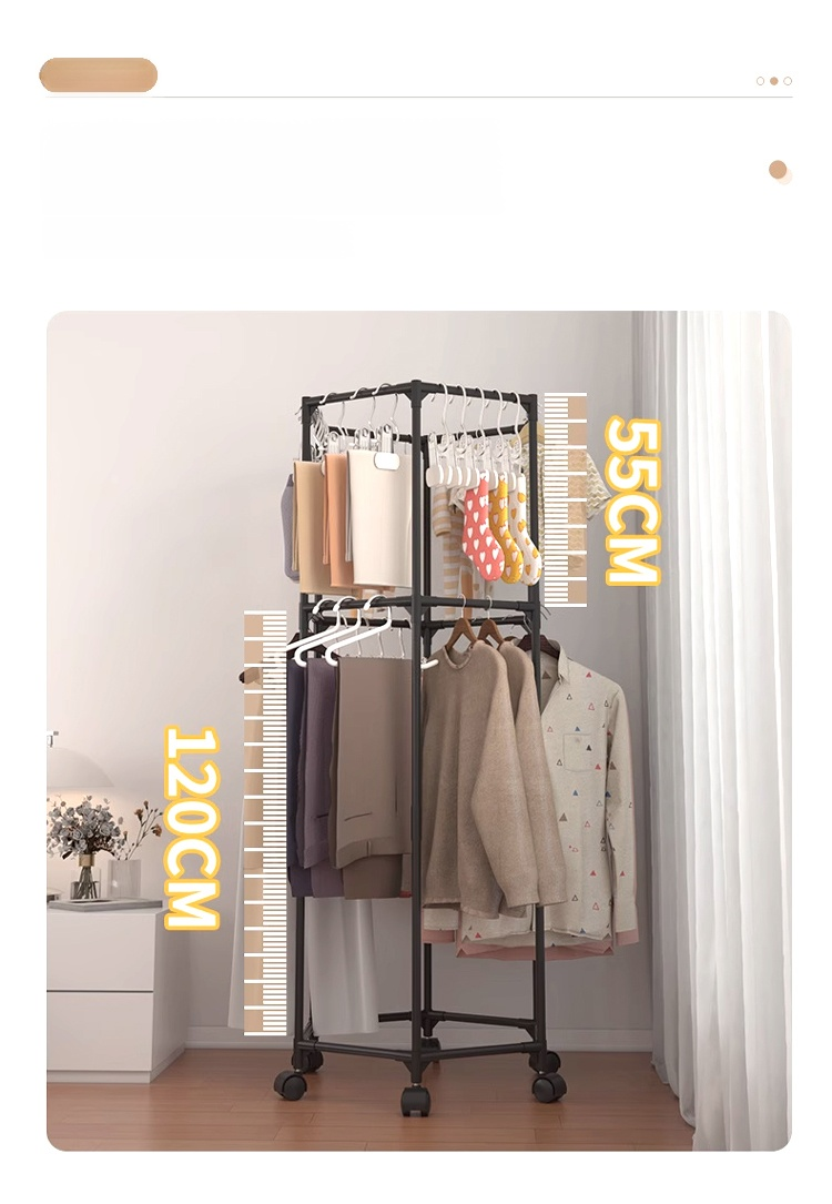 ราวแขวนผ้า 6เหลี่ยม แขวนผ้าได้หกด้านใช้งานได้สองชั้น รุ่นนี้มีล้อด้วยสามารถหมุนได้ 360 องศา